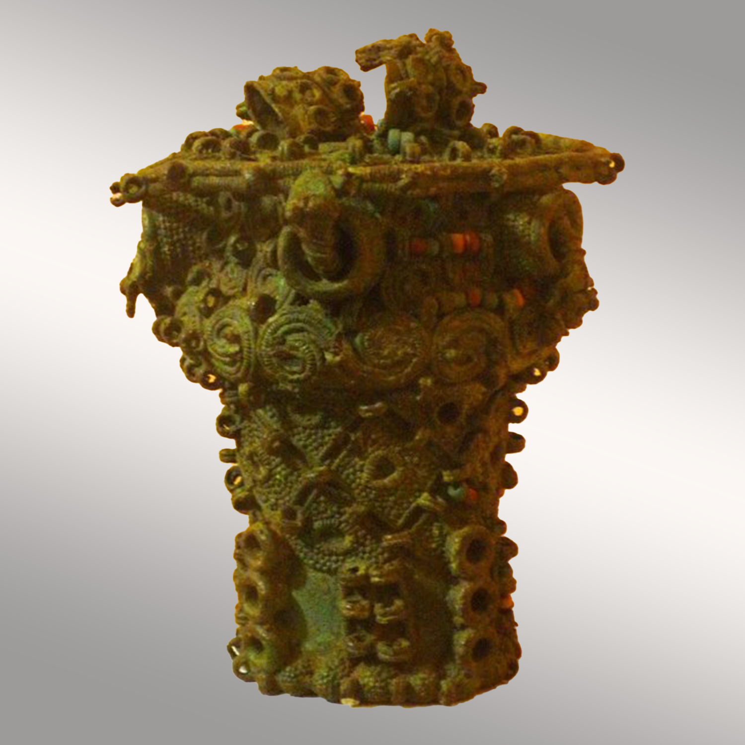 - Copper staff supporting the bronze leopard’s skull